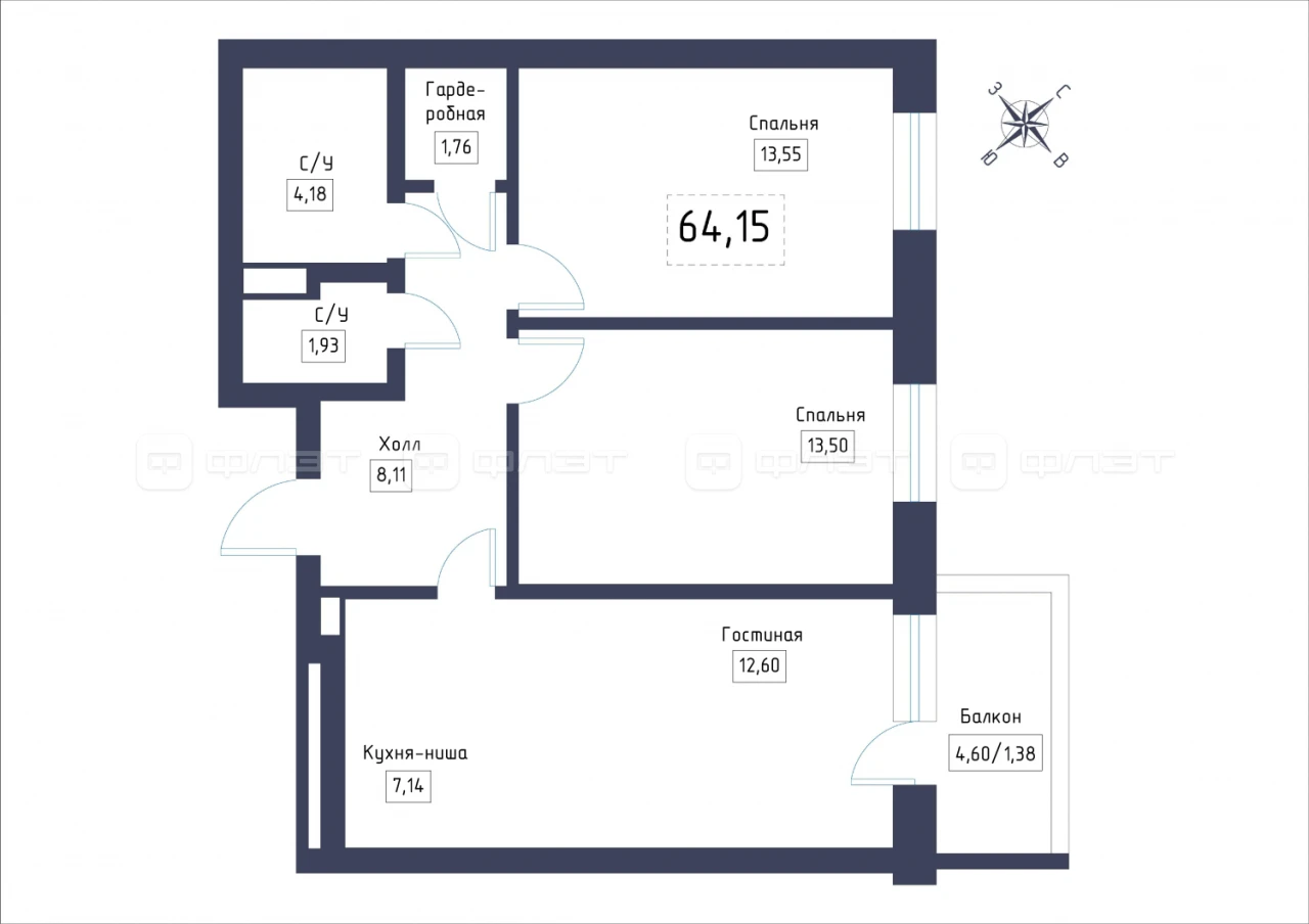 - 64.15/39.65/7.14 м²