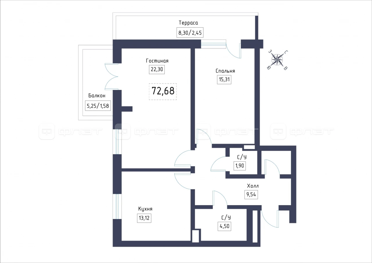 - 72.68/37.61/13.12 м²